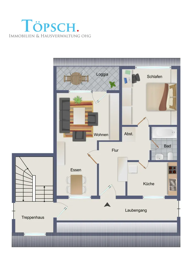 Renovierte Zweizimmerwohnung im Dachgeschoss mit Balkon